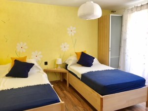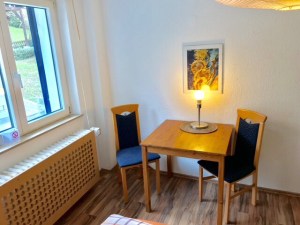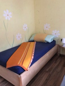 - SZ-Zimmer 2: 2 Einzelbetten (als Doppelbett stellbar). Schrank, Tisch, Stühle, Radiowecker