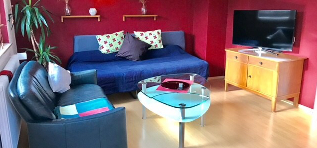 3-Zimmer Ferienwohnung (90qm): großzügig mit Platz bis 4 Personen. (Studio-Betten mit Komfortmatratze – bitte anfragen.) 2 separate Schlafzimmer und großes Wohnzimmer